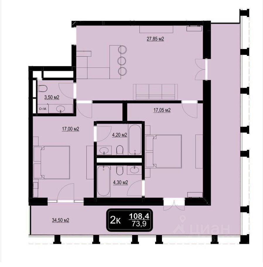 1 - 3 комнатные квартиры, площадь: 39,5м² - 118,7м²