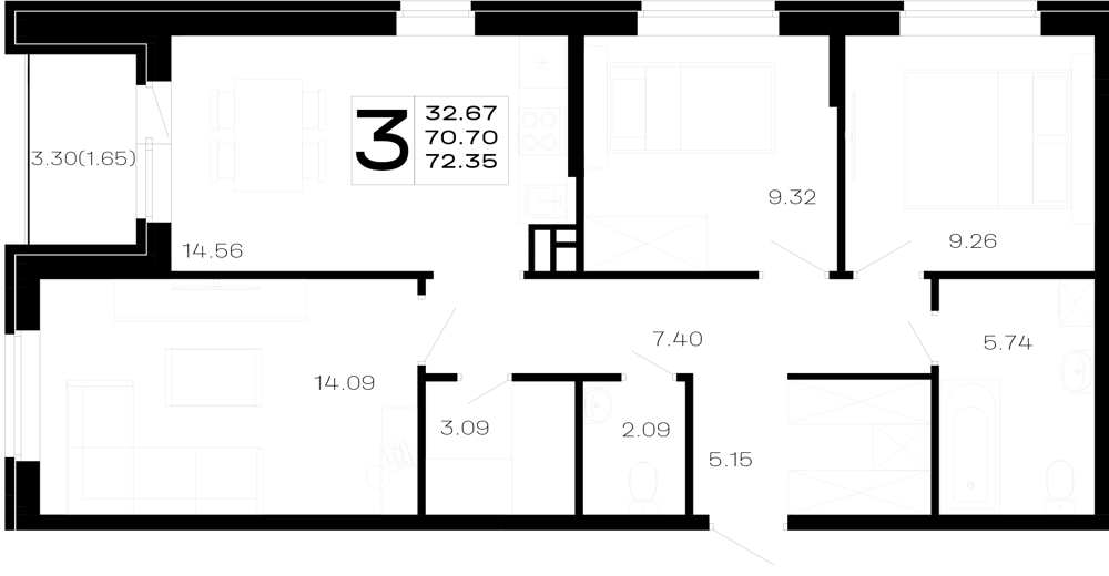 1 - 3 комнатные квартиры, площадь: 31м² - 90м²