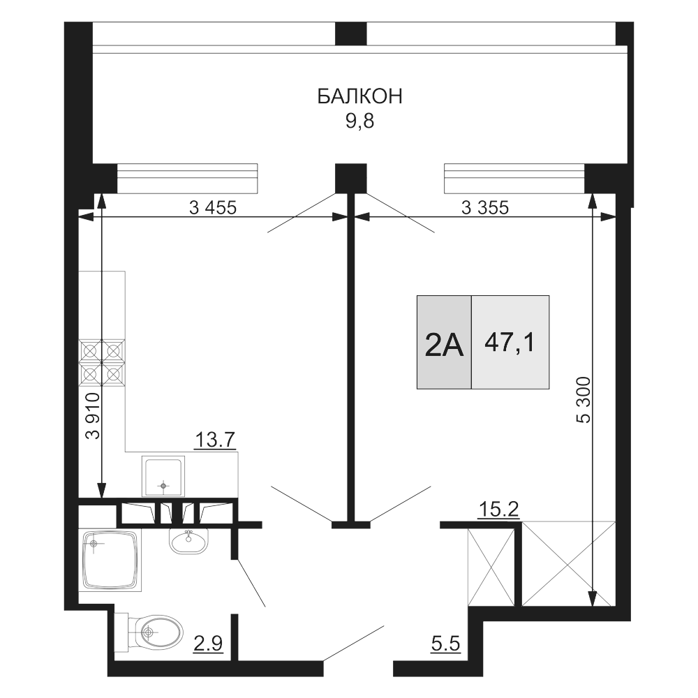 2 комнатные квартиры, площадь: от 22м²